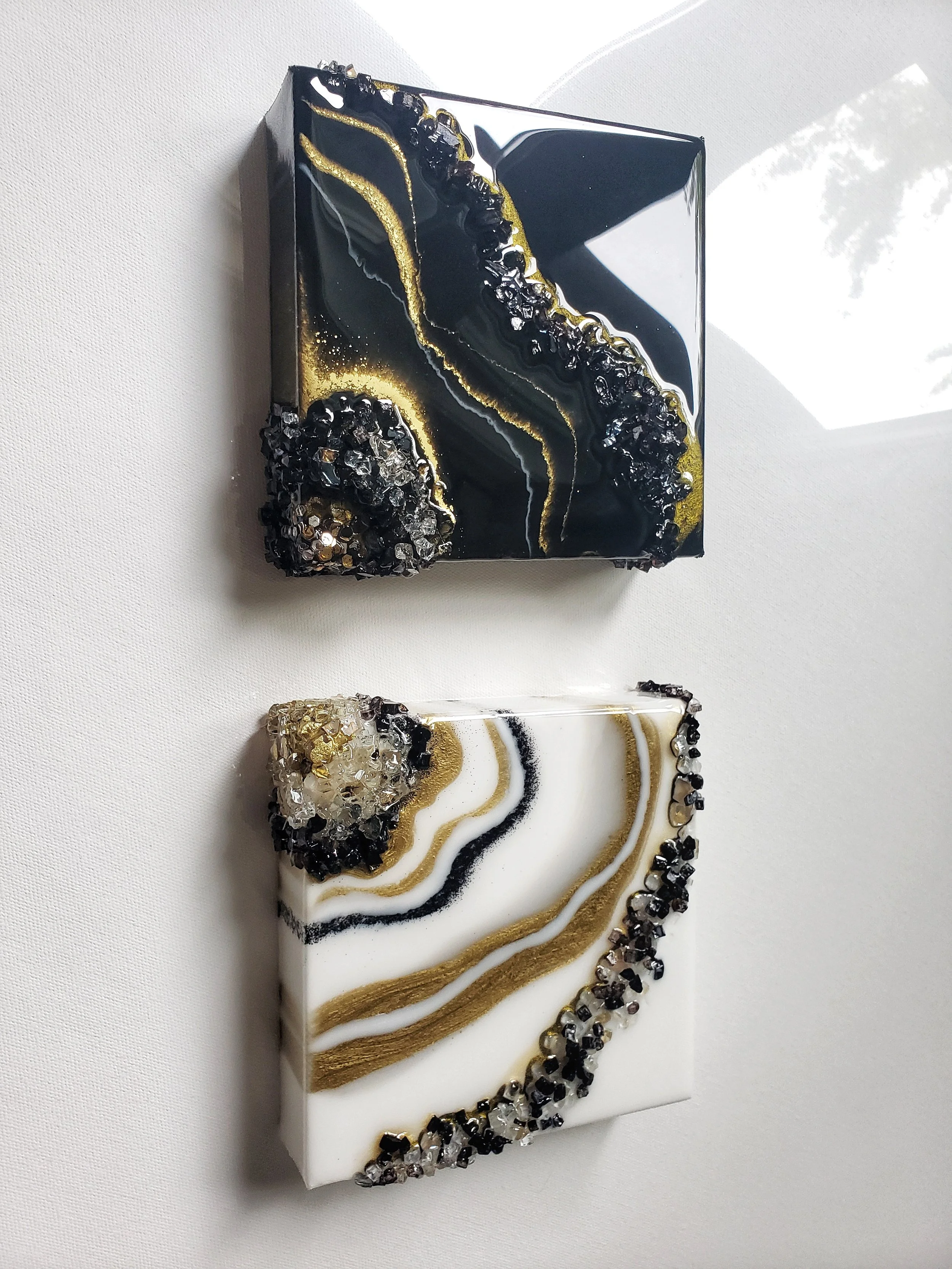 acrylic on canvas, with handpainted silver leaf details, finished with 3 layers of epoxy resin